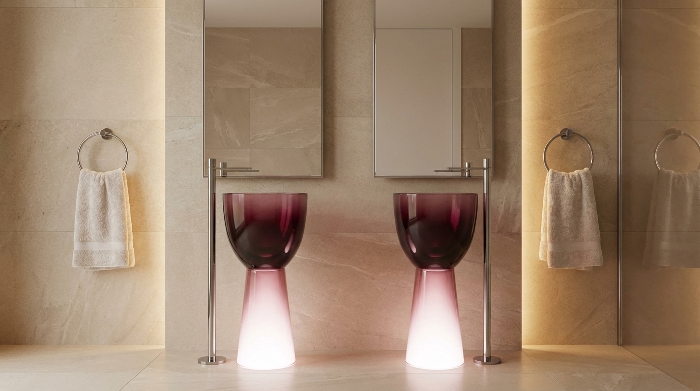 An artificial stone pedestal basin with storage space combines the functionality of a sink with the practicality of storage. Open shelves can be added to the pedestal or incorporated into the design of the basin, offering easy access to frequently used items while maintaining an open and airy feel in the bathroom.
