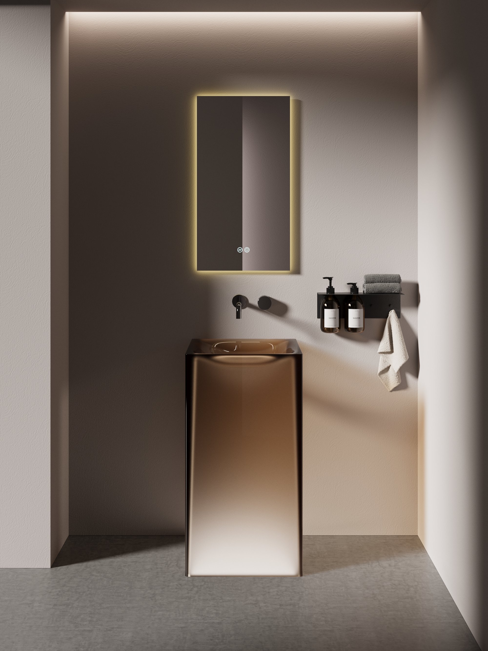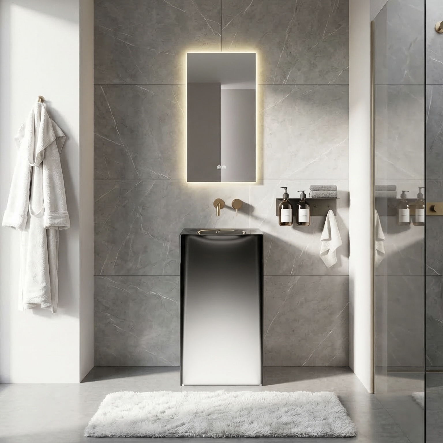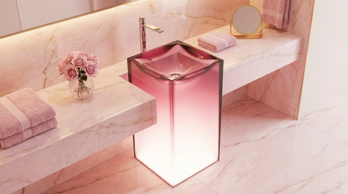 An artificial stone pedestal basin with storage space combines the functionality of a sink with the practicality of storage. Open shelves can be added to the pedestal or incorporated into the design of the basin, offering easy access to frequently used items while maintaining an open and airy feel in the bathroom.